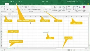 آشنایی با محیط Excel : نوار ریبون، نوار ابزار، سلولها