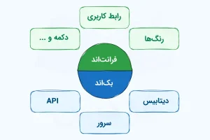 _ فرانت اند در واقع بخش ظاهری و تعاملی سایت است؛ همان چیزی که کاربر میبیند و لمس میکند.